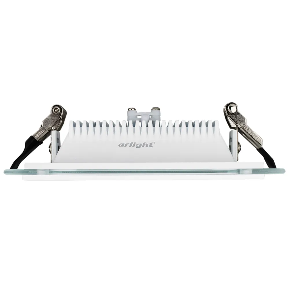 Стеклянная квадратная панель 12Вт / БЕЛЫЙ 5500-6000K / 950лм / 120°. Размер 160x160x45мм (в отверстие 125x125мм). Корпус белый. Питание от сети AC 230V, драйвер в к-те 300mA 25-45V. Для использования с диммерами TRIAC замените драйвер на ARJ-LK48320-DIM (приобретается отдельно). Для помещений.