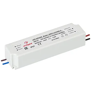 Источник напряжения с гальванической развязкой для светодиодных изделий. Входное напряжение 100-240 VAC. Выходные параметры: 24 В, 2,5 А, 60 Вт. Встроенный PFC >0,5. Герметичный пластиковый корпус IP 67. Рабочая температура -20…+50C⁰. Габаритные размеры длина 162 мм, ширина 42 мм, высота 34 мм. Гарантийный срок 3 года.