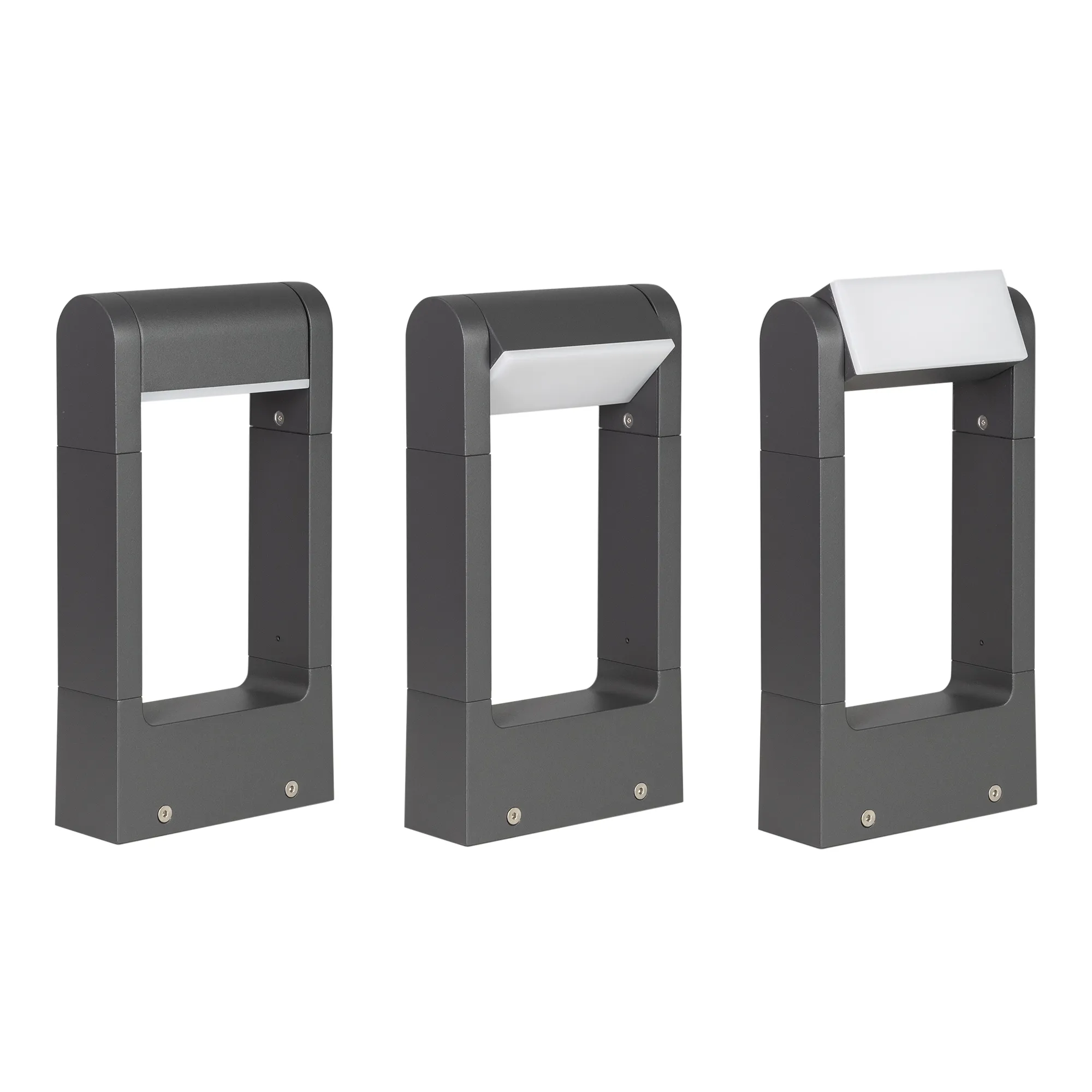 300мм уличный светодиодный светильник для дорожек, изменяемый угол освещения (111 градусов), на 2 стороны. Цвет ТЕПЛЫЙ БЕЛЫЙ 3000К, светодиоды 6Вт SMD (276 лм). Влагозащищенный корпус IP54 - темно-серый алюминий, экран ударопрочный PC. Питание 220В, мощность 6 Вт. Размеры ВхШхГ 300х160х54 мм.