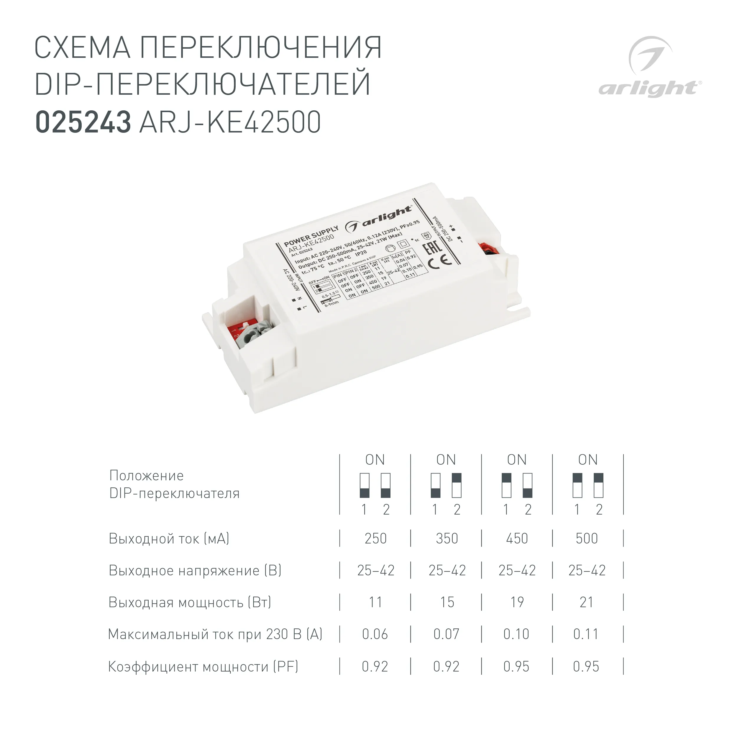 Блок питания ARJ-KE42500 (21W, 250-500mA, PFC) (Arlight, IP20 Пластик, 5 лет)