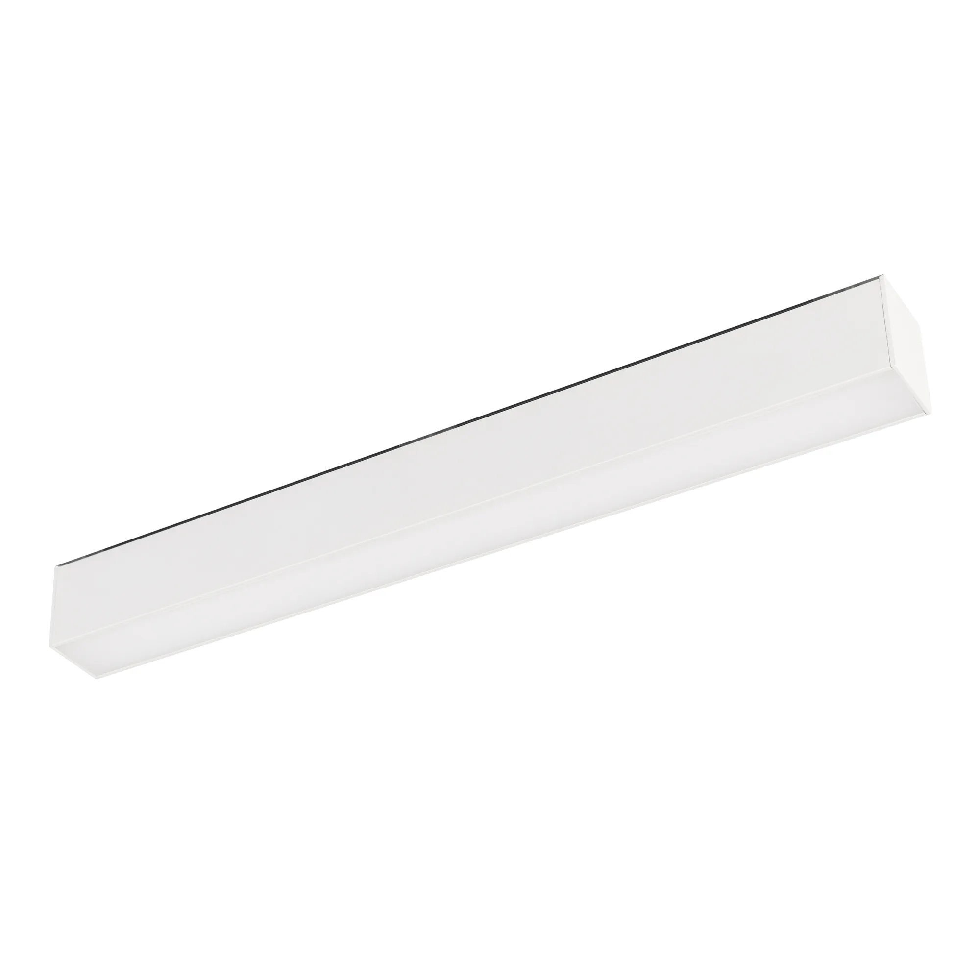Светильник для магнитных треков шириной 45мм, 12Вт. Цвет свечения ДНЕВНОЙ 4000K, световой поток 1300лм, угол 100°, CRI>90. Корпус прямоугольный, металл, цвет белый, IP20. Размеры LxWxH 404x35x43мм. Входное напряжение DC24V, мощность 12Вт. Драйвер DС24V/AC230V поставляется отдельно. Диммируется только с 026407(1), 027633.