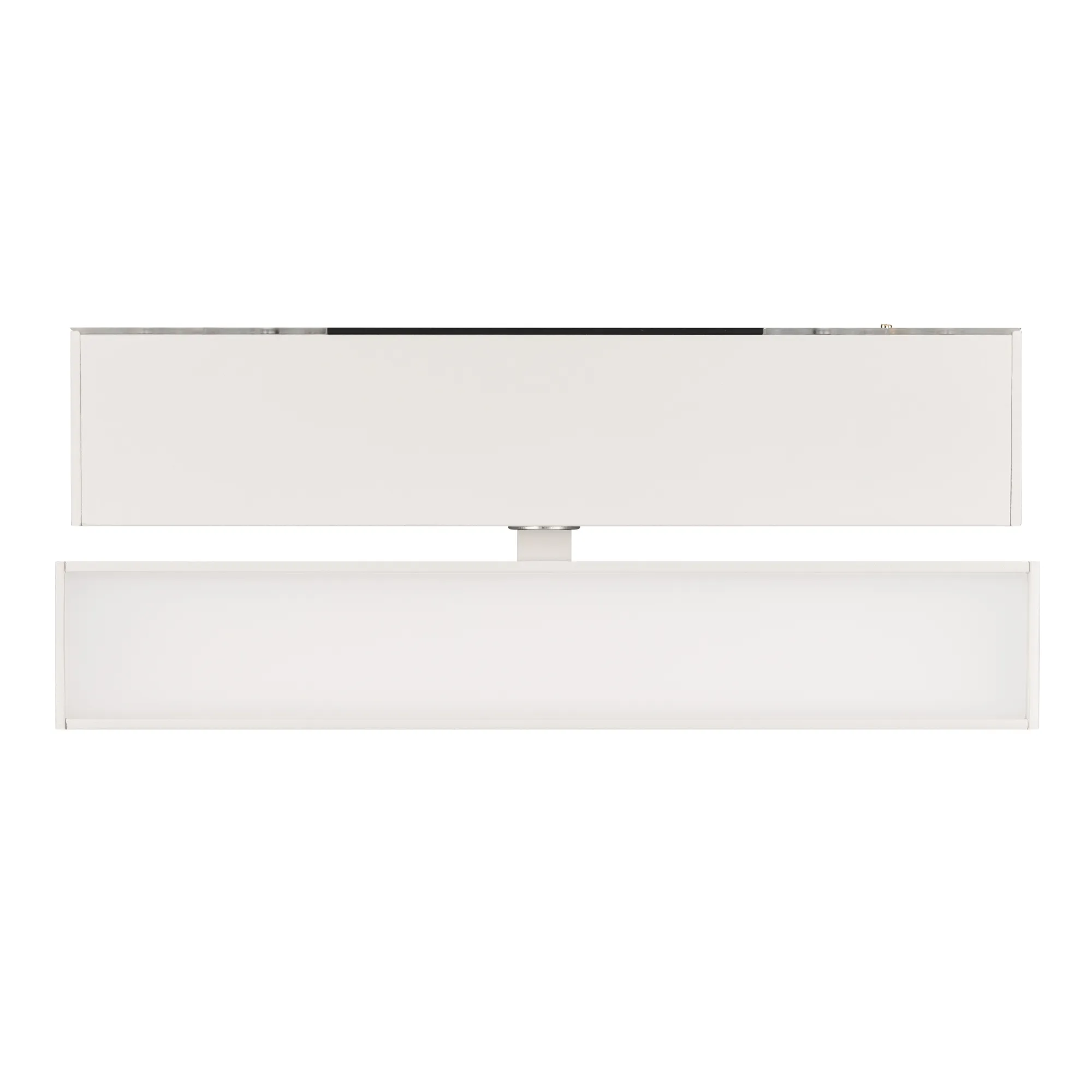 Светильник поворотный для магнитных треков шириной 45мм, 6Вт. Цвет свечения ТЕПЛЫЙ 3000K, световой поток 600лм, угол 100°, CRI>90. Корпус прямоугольный, металл, цвет белый, IP20. Размеры LxWxH 204x35x92.5мм. Входное напряжение DC24V, мощность 6Вт. Драйвер DС24V/AC230V поставляется отдельно. Диммируется только с 026407(1), 027633.