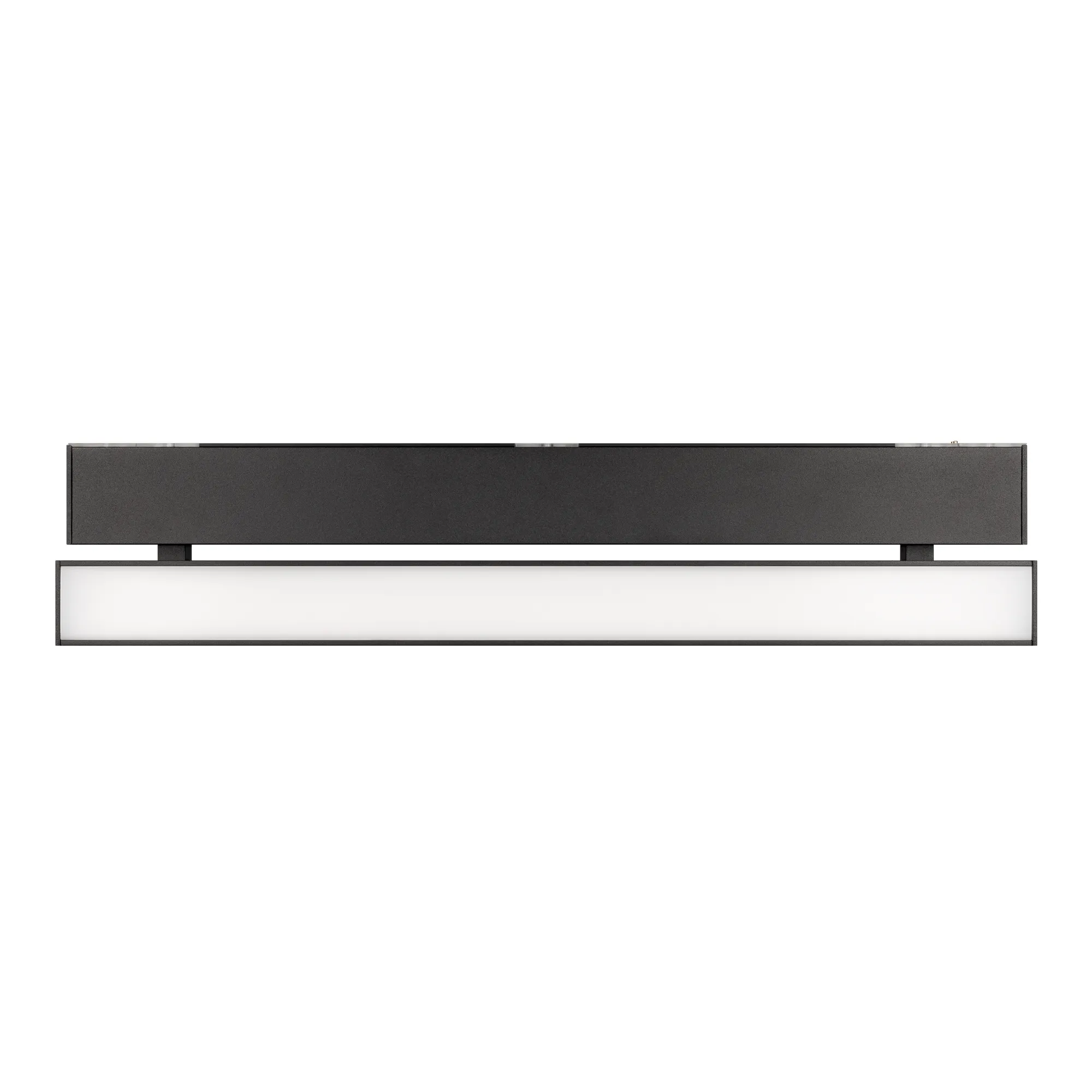 Светильник поворотный для магнитных треков шириной 45мм, 12Вт. Цвет свечения ТЕПЛЫЙ 3000K, световой поток 1200лм, угол 100°, CRI>90. Корпус прямоугольный, металл, цвет черный, IP20. Размеры LxWxH 404x35x92.5мм. Входное напряжение DC24V, мощность 12Вт. Драйвер DС24V/AC230V поставляется отдельно. Диммируется только с 026407(1), 027633.