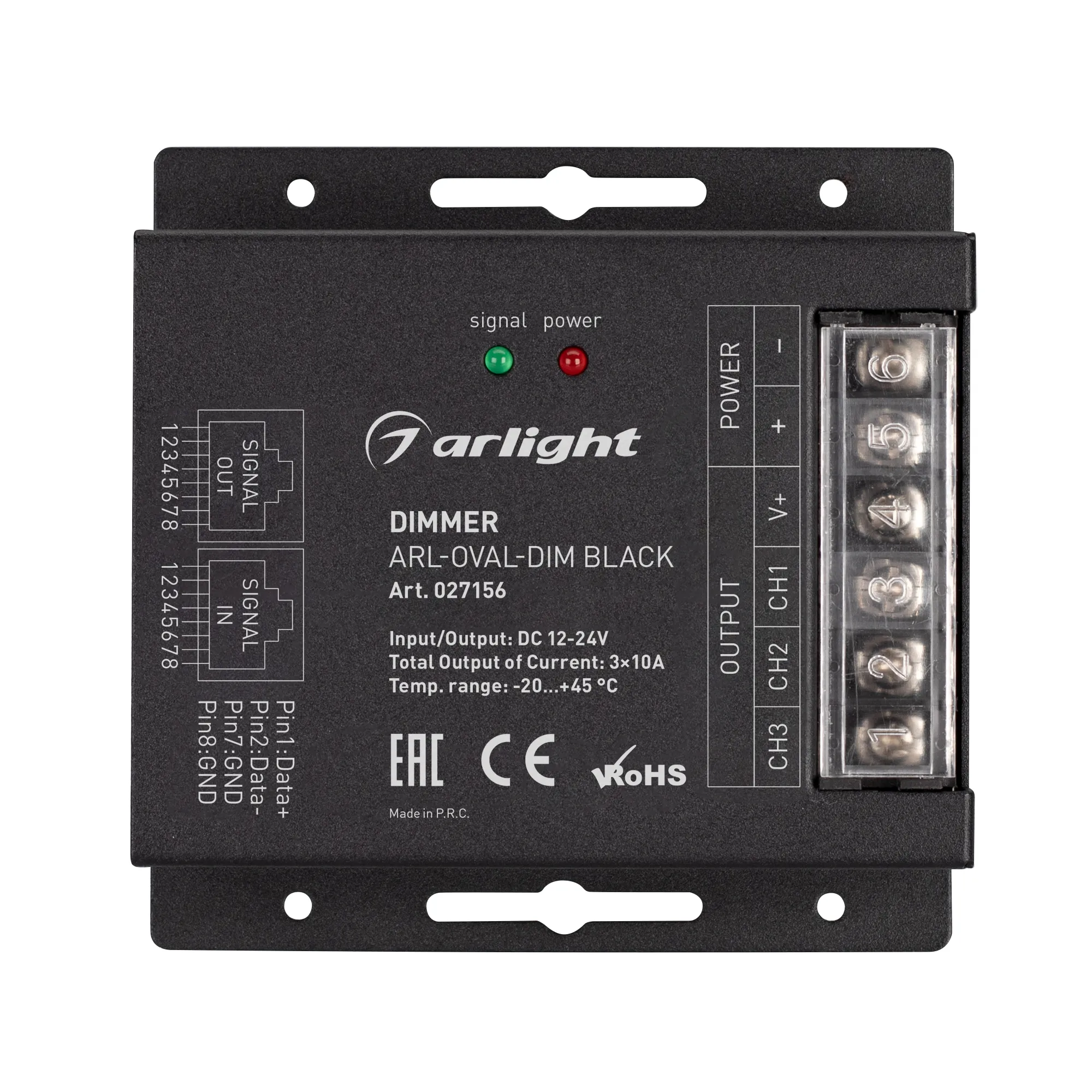 В магазине Мельковский Свет Вы можете купить "Диммер ARL-OVAL-DIM Black (12-24V, 3x10A, ПДУ Овал, RF, RJ45) (Arlight, IP20 Металл, 3 года)"