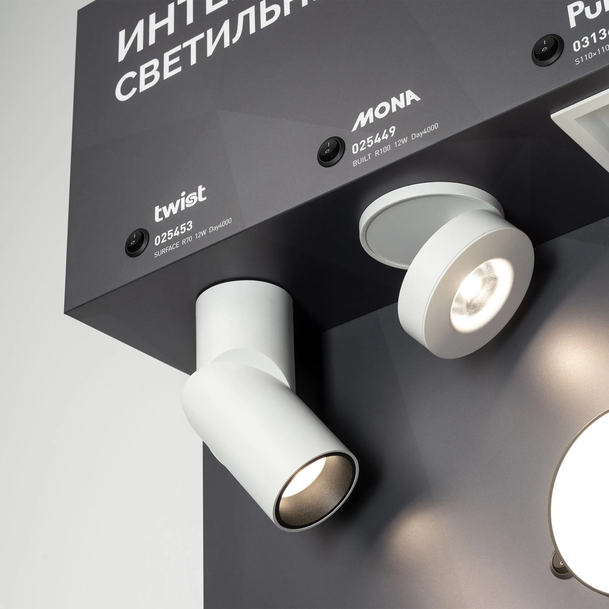 Стенд Интерьерные светильники. Материал - композит 3 мм, пленка, печать.