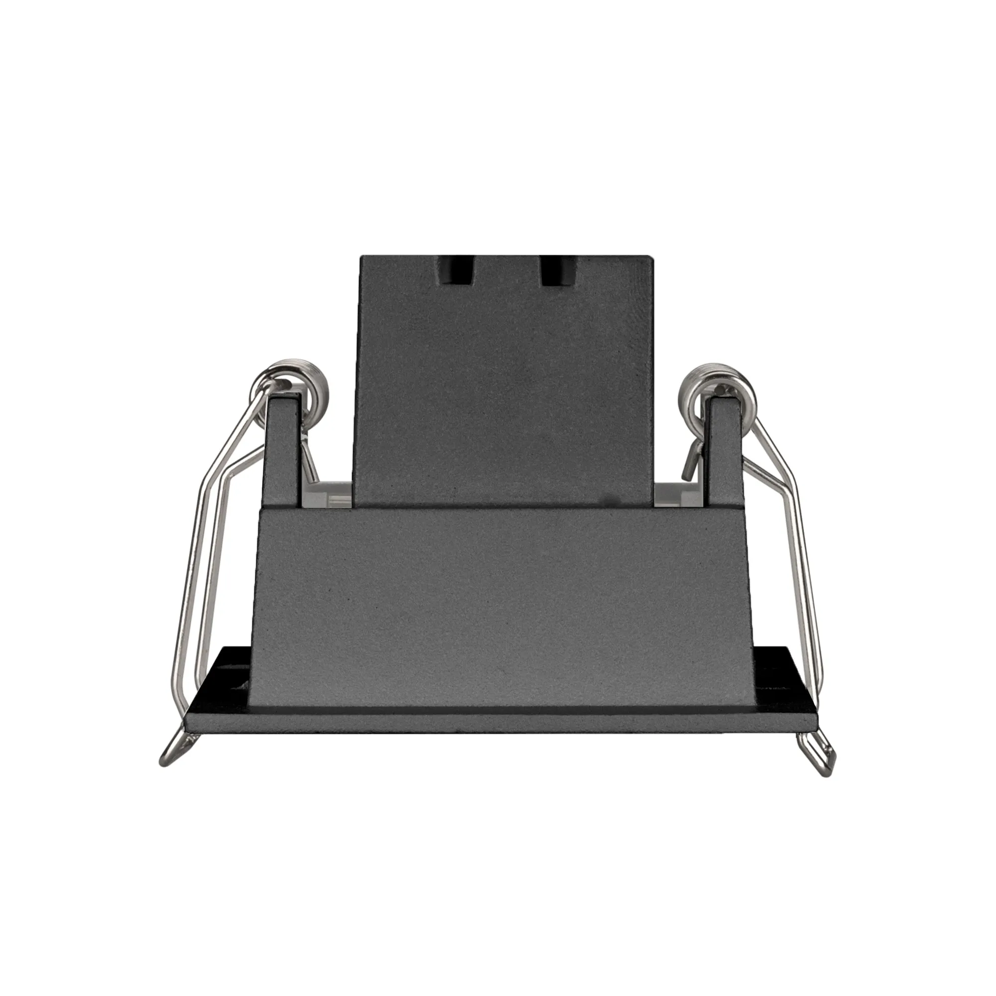 Встраиваемый поворотный светильник. Мощность 3 Вт, св. поток 188 лм, 59 лм/Вт, дневной 4000 K, CRI>98, угол 30°, напряжение питания 230 В. Чёрный прямоугольный корпус из алюминия, экран PMMA, степень защиты IP20. Размер: длина 67 мм, ширина 67 мм, высота 50 мм. Монтаж встраиваемый, установочное отверстие длина 60 мм, ширина 60 мм. Драйвер 2-4 В, 700 мА, пульсация <1%.