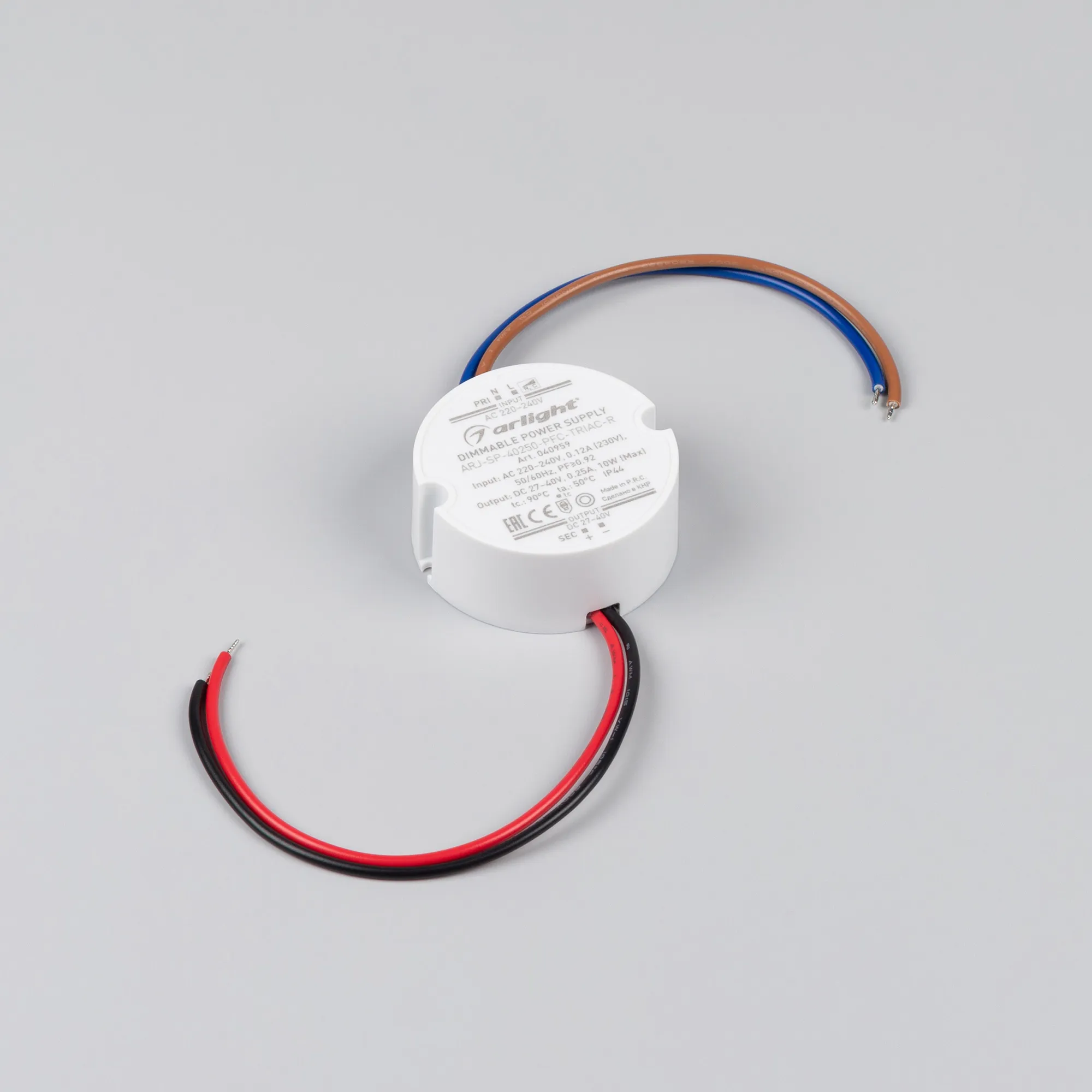 В магазине Мельковский Свет Вы можете купить "Блок питания ARJ-SP-40250-PFC-TRIAC-R (10W, 27-40V, 250mA) (Arlight, IP44 Пластик, 5 лет)"