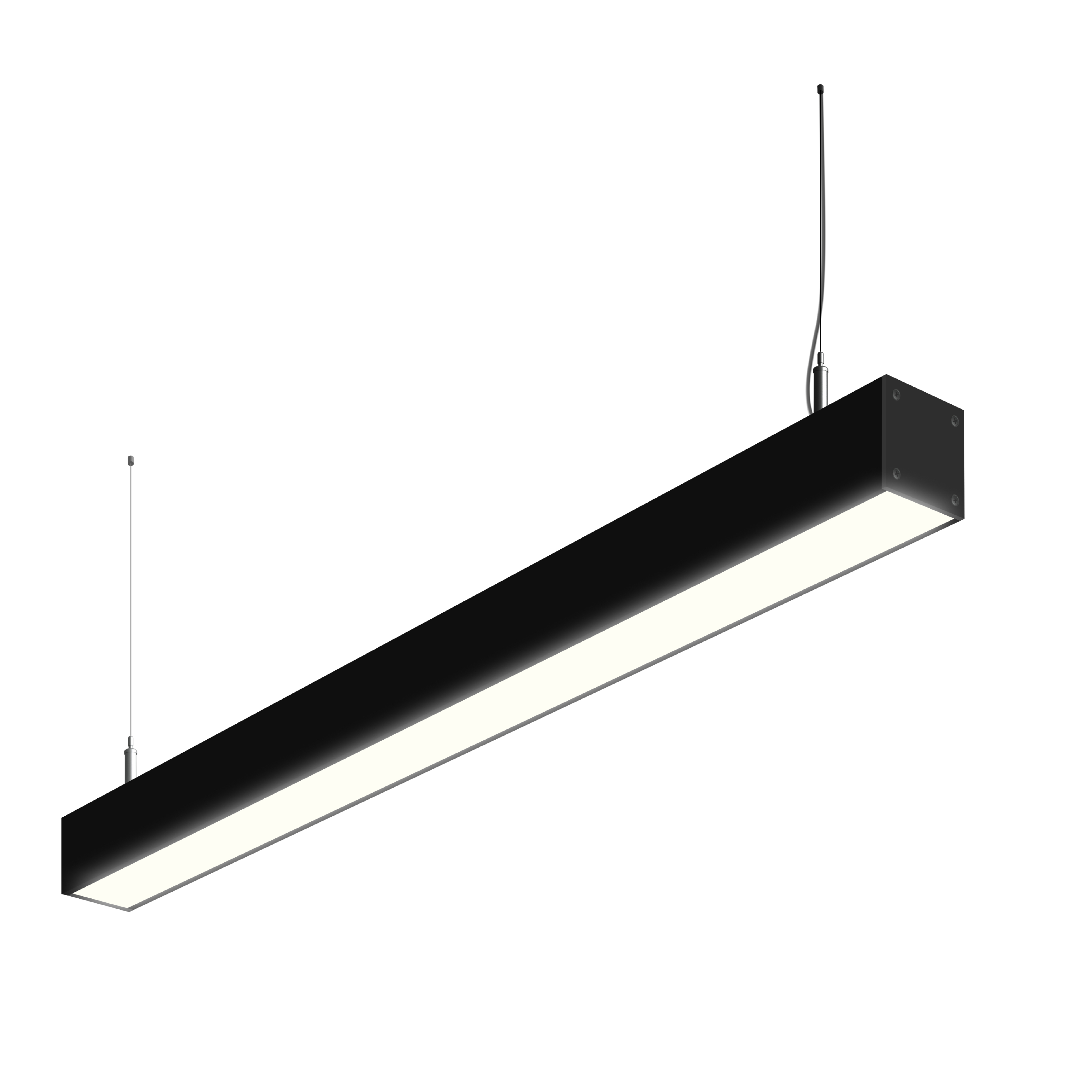 Подвесной светильник MS-LINEAR Линейный размер профиля 77х74мм длиной 1250мм мощностью 60W. Светильник собирается в алюминиевом корпусе с матовым рассеивателем, который дает равномерную засветку по всей площади.