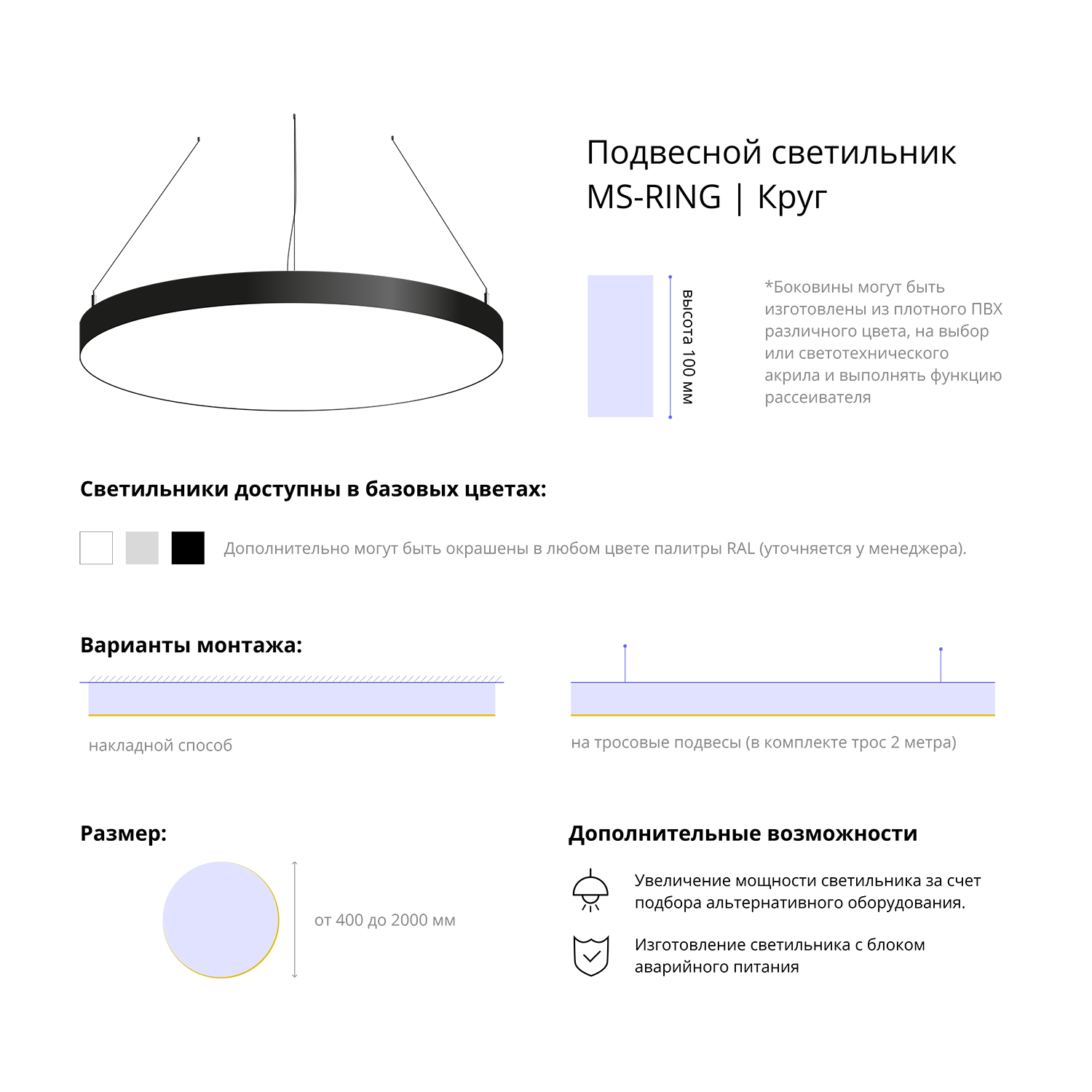 В магазине Мельковский Свет Вы можете купить "Cветодиодный фигурный светильник MS-RING Круг 500mm 40W 3000/4000/6000K"