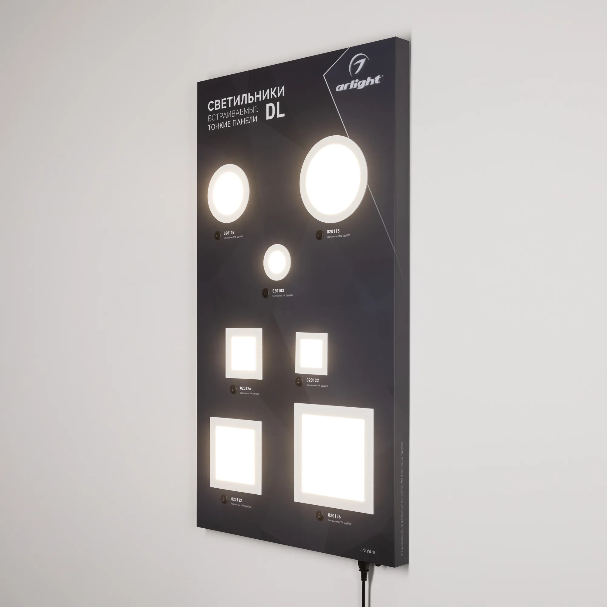 Стенд Светильники встраиваемые Тонкие панели (Arlight, Пластик)