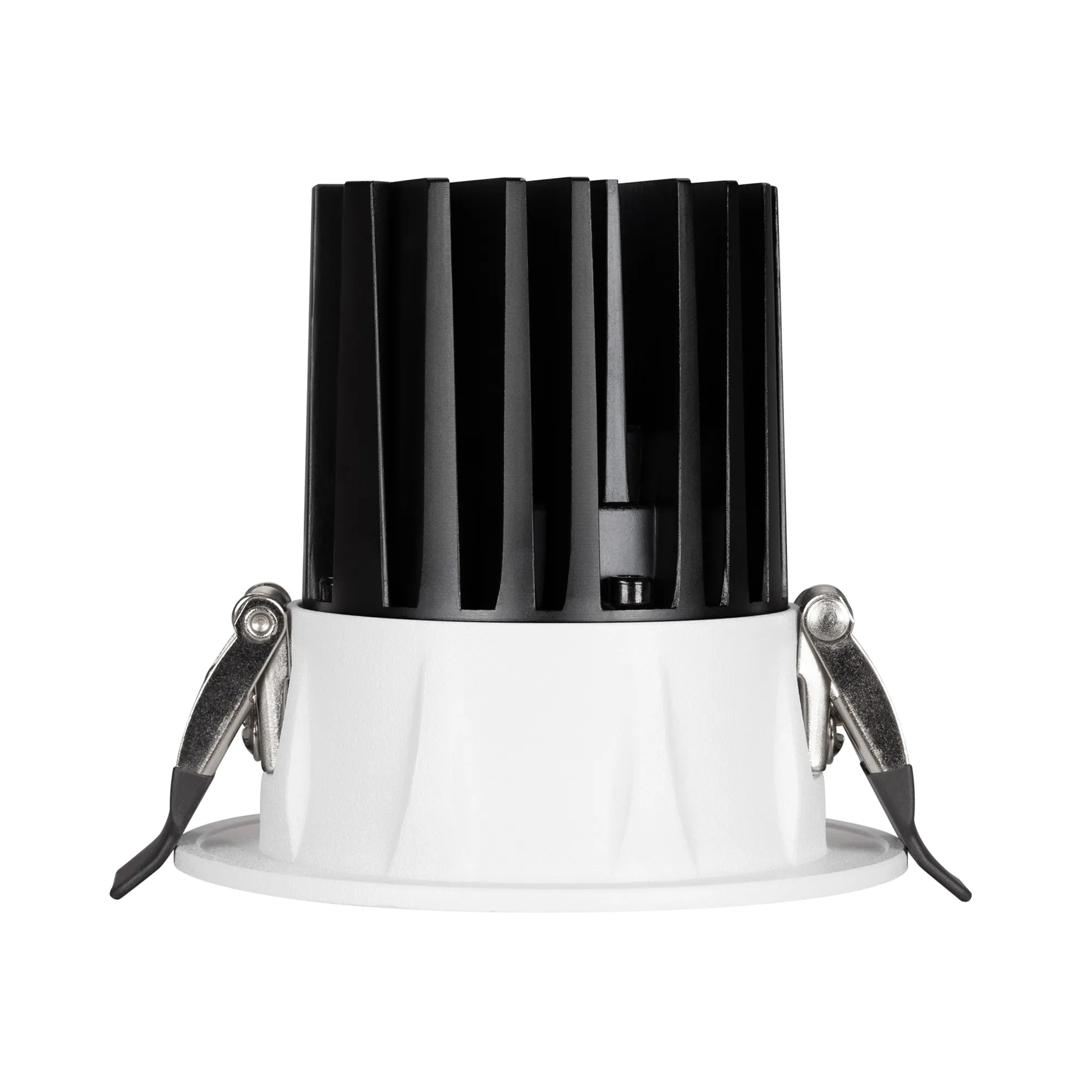 Встраиваемый светильник даунлайт. Мощность 10 Вт, св. поток 910 лм, 90 лм/Вт, дневной 4000 K, CRI>90, угол 60°, напряжение питания 230 В. Белый круглый корпус из алюминия, экран PMMA, степень защиты IP54. Размер: диаметр 86 мм, высота 80 мм. Монтаж встраиваемый, установочное отверстие: диаметр 80 мм. Драйвер IP54, 20-40 В, 250 мА, пульсация <1%.