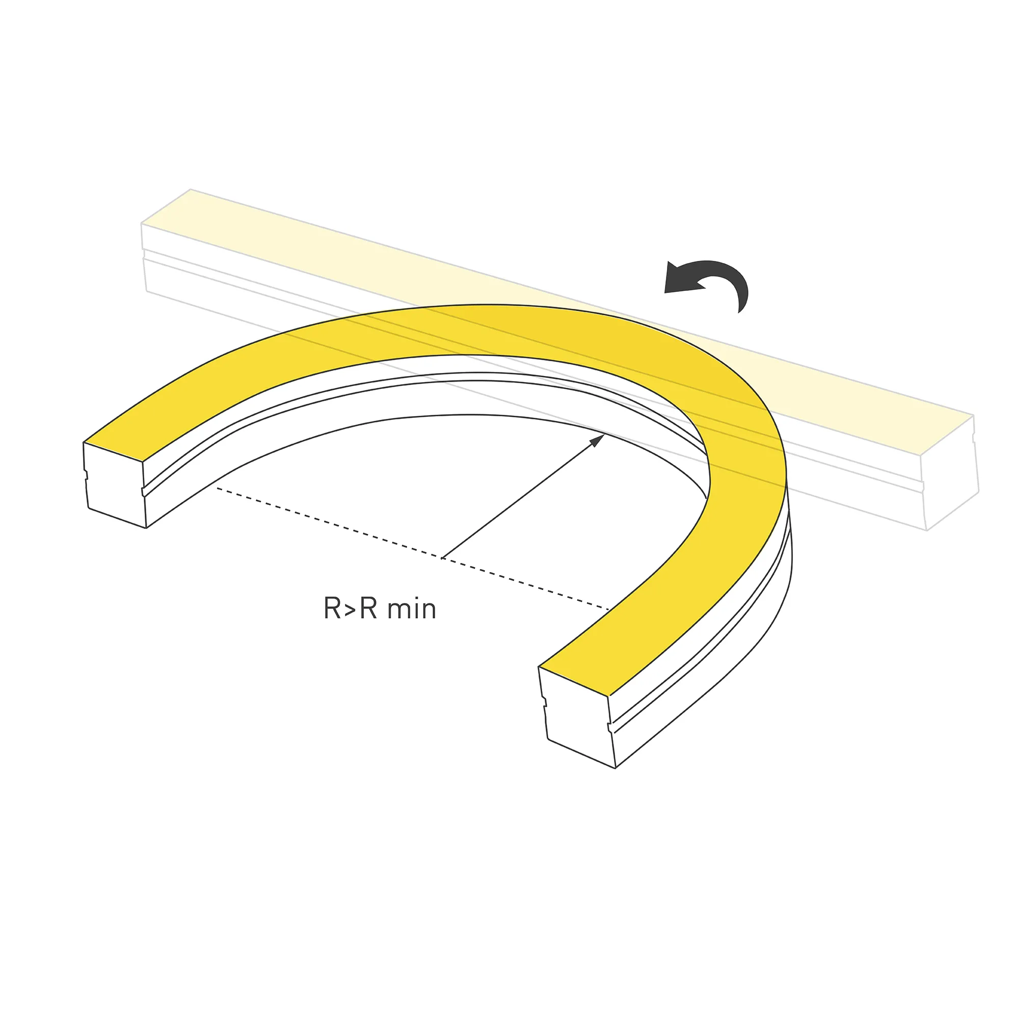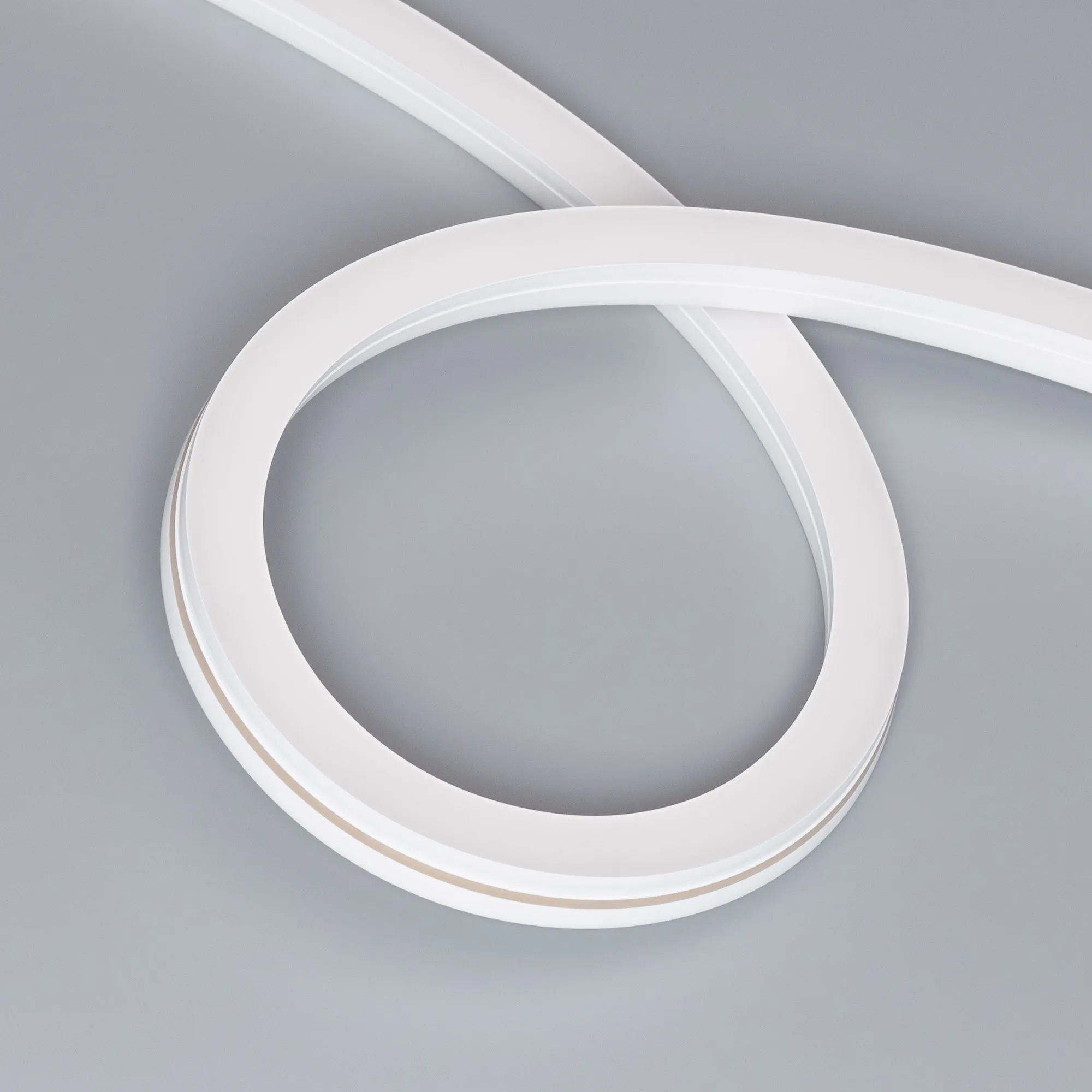 Гибкая герметичная лента (неон серии MOONLIGHT), сечение 16×16 мм. Светодиоды CSP 280 шт/м. Цвет свечения ТЕПЛЫЙ (2300К), индекс цветопередачи CRI>90, световой поток 340 лм/м, угол излучения 114°. Мощность 10 Вт/м, питание 24 В. Класс пылевлагозащиты IP67. Размеры 15000×16×16 мм. Мин. отрезок 50 мм. Горизонтальный изгиб SIDE, минимальный радиус изгиба 120 мм. Катушка 15 м. Цена за 1 м. Гарантия 5 лет.