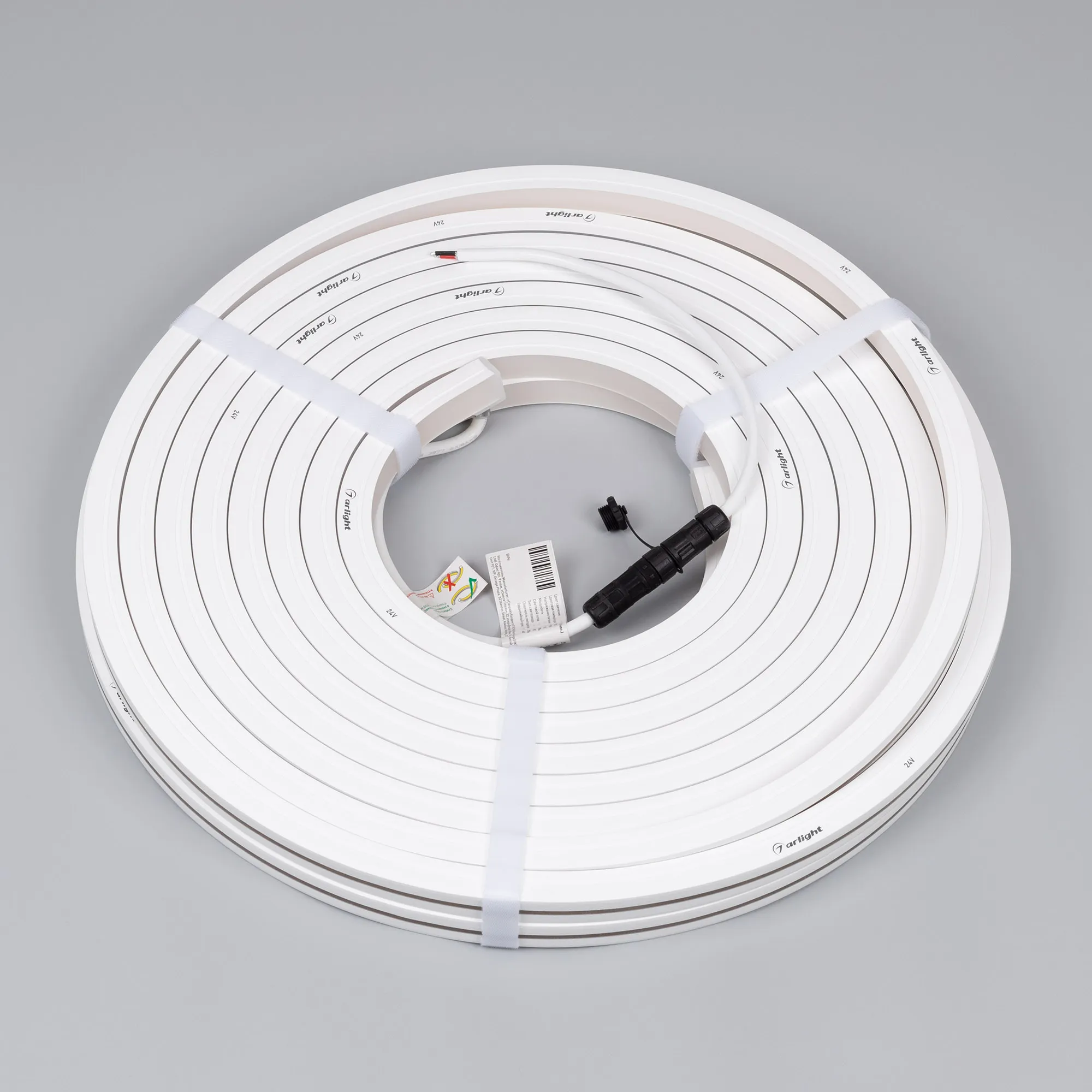 Гибкая герметичная лента (неон серии MOONLIGHT), сечение 16×16 мм. Светодиоды CSP 280 шт/м. Цвет свечения ТЁПЛЫЙ(2700К), индекс цветопередачи CRI>90, световой поток 430 лм/м, угол излучения 114°. Мощность 10 Вт/м, питание 24 В. Класс пылевлагозащиты IP67. Размеры 15000×16×16 мм. Мин. отрезок 50 мм. Вертикальный изгиб TOP, минимальный радиус изгиба 120 мм. Катушка 15 м. Цена за 1 м. Гарантия 5 лет.