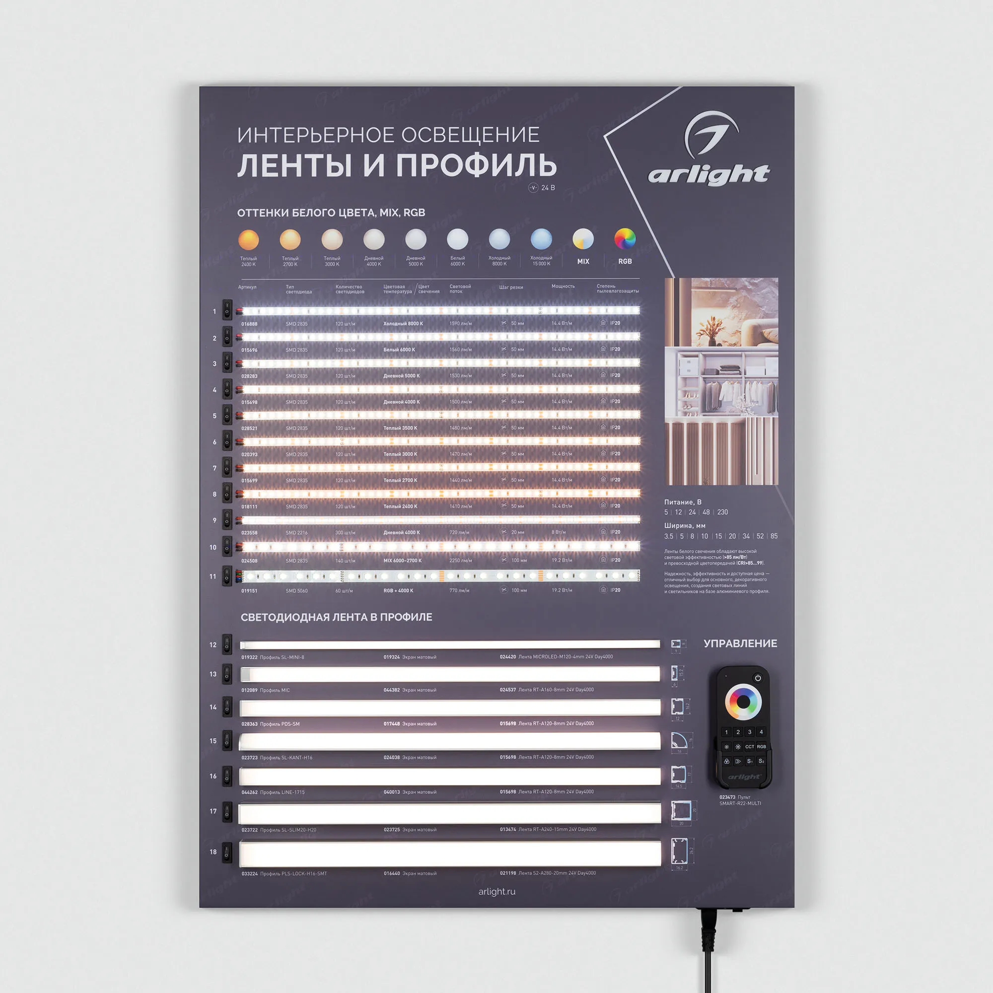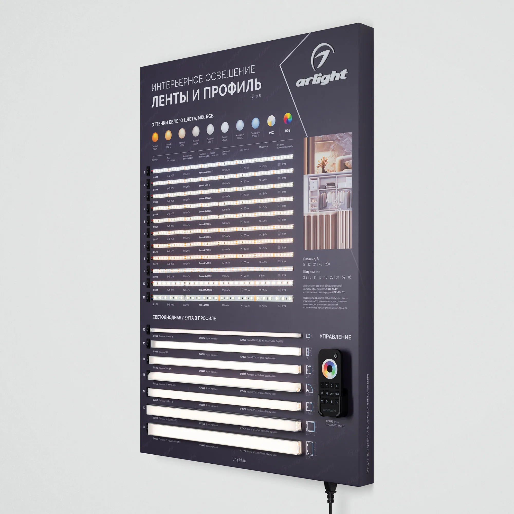 В магазине Мельковский Свет Вы можете купить "Стенд Ленты и Профиль ARL-COMBO-01-830х600mm (230V) (Arlight, -)"