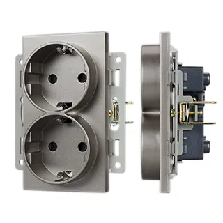Механизм розетки вертикальный, с заземлением на 2 поста и с суппортом из алюминия. Цвет - серый. Степень пылевлагозащиты - IP20.