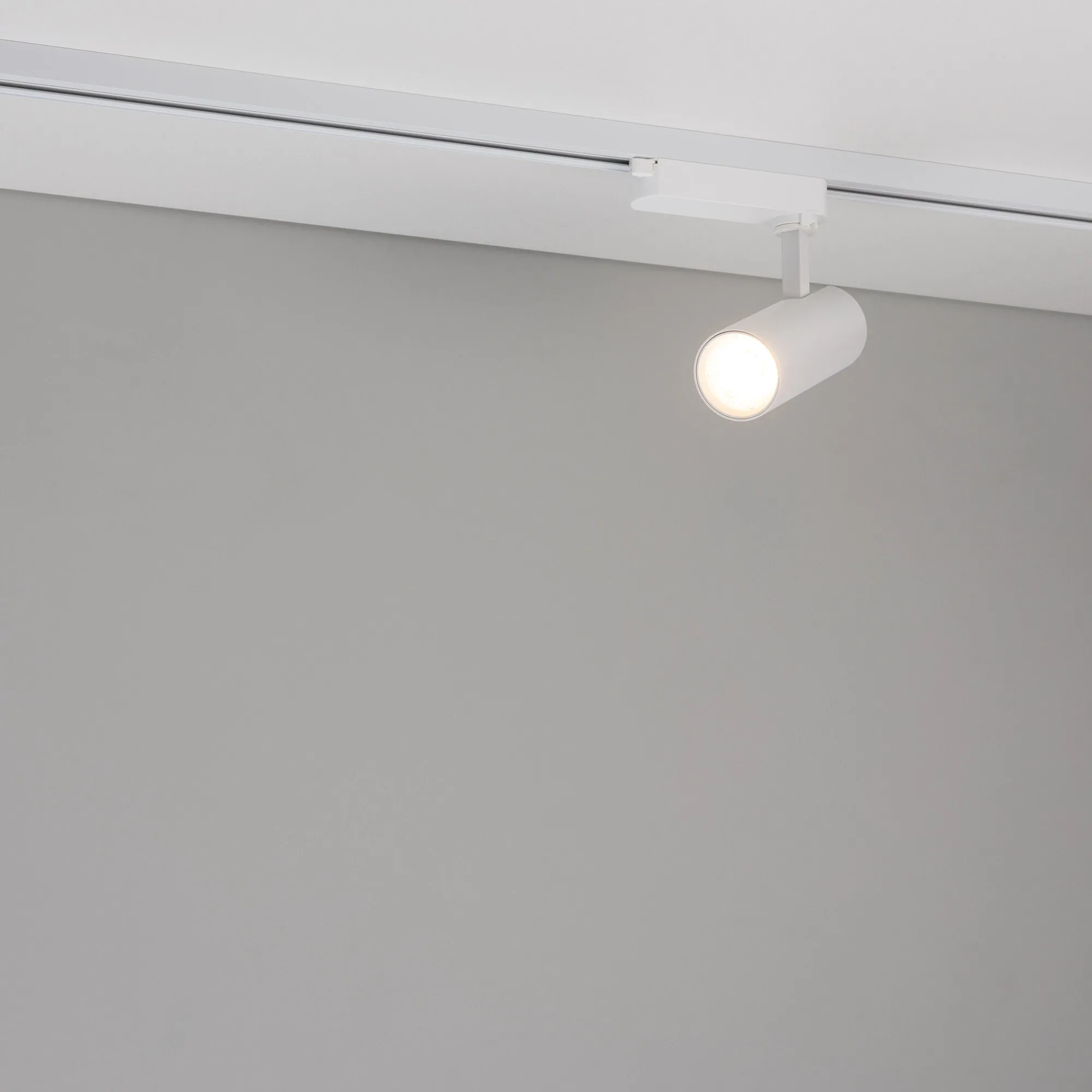 Светильник для треков/шин 2 провода. Мощность 15 Вт, св. поток без решетки honeycomb 1500 лм, 100 лм/Вт, с решеткой honeycomb 990 лм, 66 лм/Вт, дневной 4000 K, CRI>90, угол 55°, напряжение питания 230 В. Белый круглый корпус из алюминия, материал линзы PMMA, степень защиты IP20. Размер: диаметр 60 мм, длина световой части 141 мм. Монтаж на трек 1-фазный. Драйвер встроенный 350 мА 25-40 В, пульсация <5%.