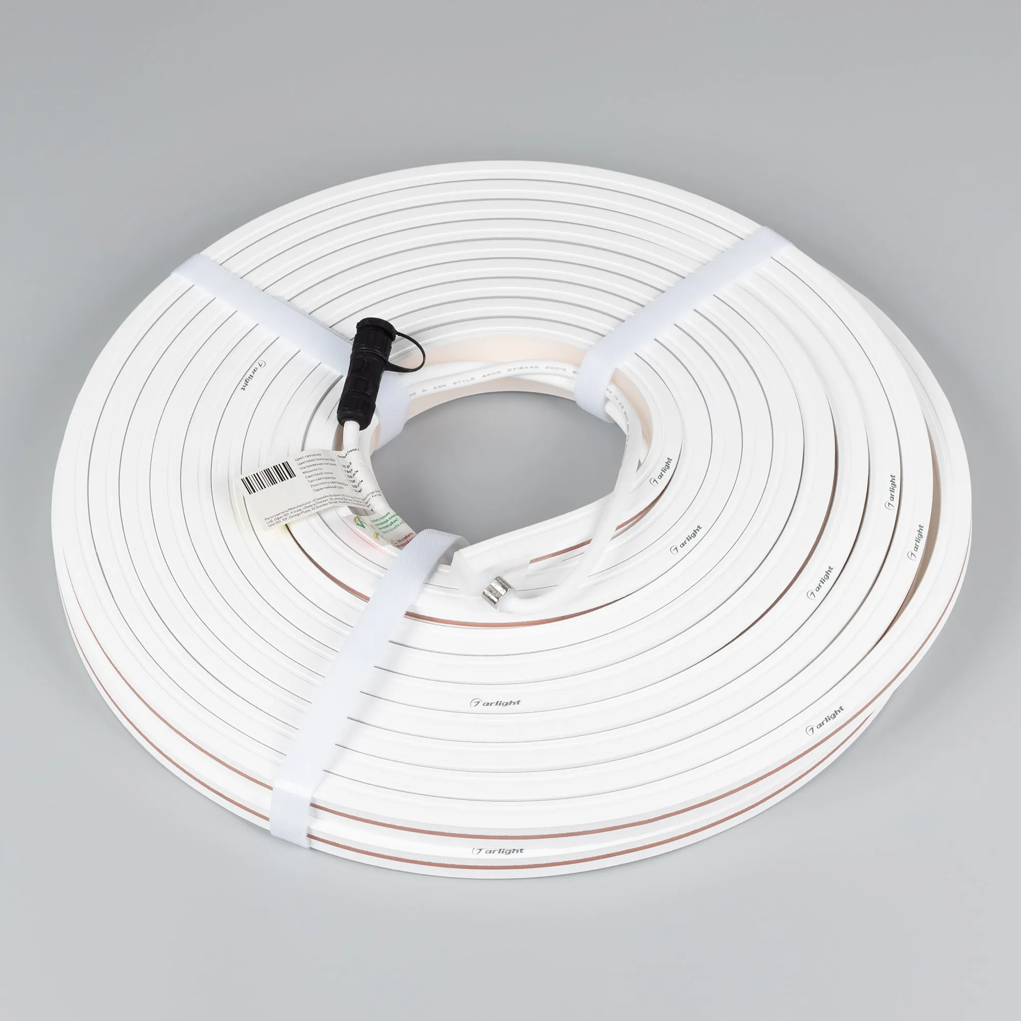 Гибкая герметичная лента (неон серии MOONLIGHT), сечение 12×13 мм. Светодиоды CSP 320 шт/м. Цвет свечения БЕЛЫЙ (6000 К), индекс цветопередачи CRI>90, световой поток 300 лм/м, угол излучения 114°. Мощность 5 Вт/м, питание 24 В. Класс пылевлагозащиты IP67. Размеры 15000×12×13 мм. Мин. отрезок 50 мм. Вертикальный изгиб TOP, минимальный радиус изгиба 60 мм. Катушка 15 м. Цена за 1 м. Диапазон рабочих температур окружающей среды при продолжительной эксплуатации -25...+80°С , при кратковременной -25...+110°С. Гарантия 3 года.