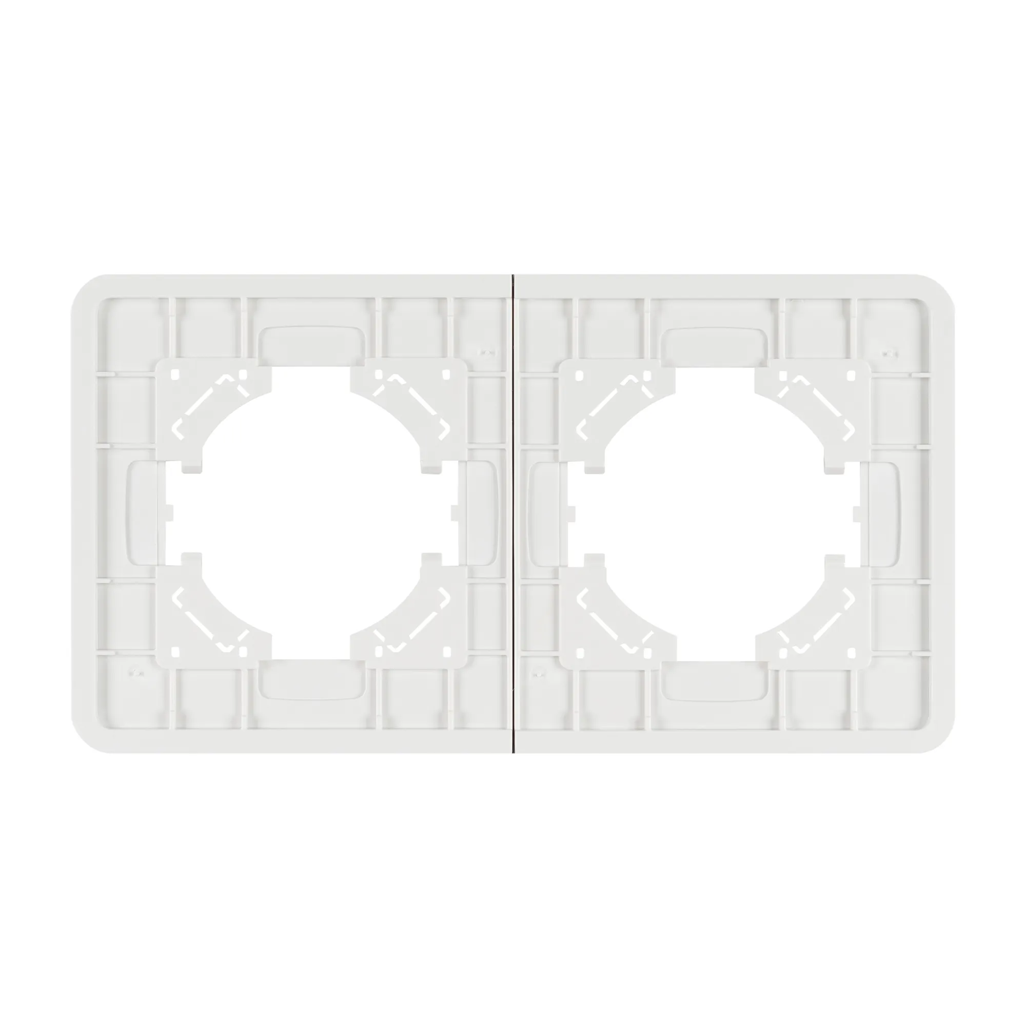 Рамка алюминиевая на 2 поста, под встраиваемый механизм. Цвет - серебристый. Среднего уровня герметичности IP20. Ориентация монтажа - горизонтальная (основным ориентиром служат посадочные выступы для накладки механизма).