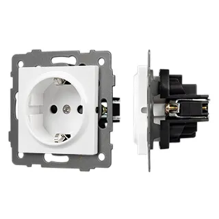 Механизм розетки с заземлением на 1 пост. Цвет - белый. Без фронтальной рамки. Уровень пылевлагозащиты IP20. Устанавливается в стандартный подрозетник.