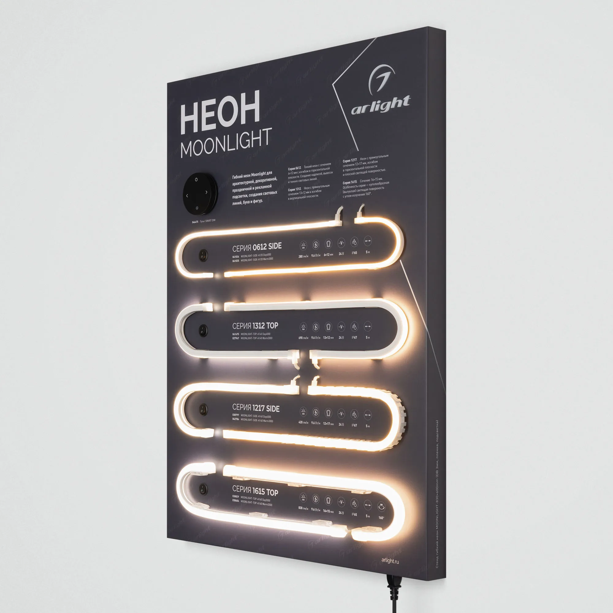 Наши специалисты знают все о продукции Arlight и с радостью помогут Вам выбрать комплектующие к товару "Стенд Гибкий Неон MOONLIGHT-830x600mm (DB 3мм, пленка, подсветка) (Arlight, -)", или другие товары из раздела "Светодиодный декор".