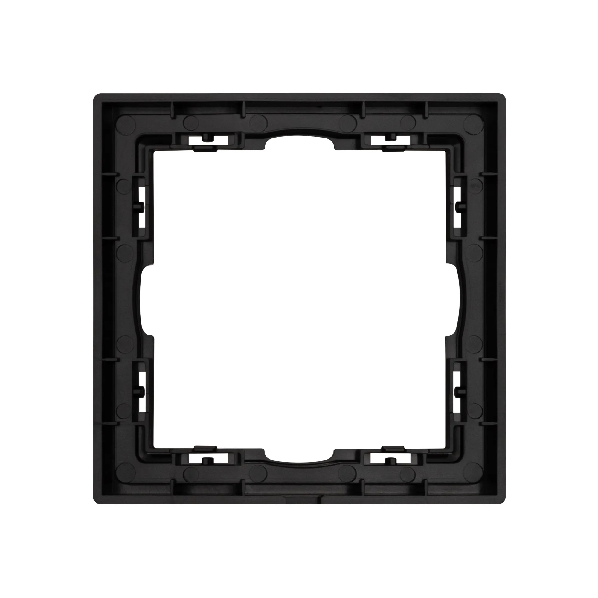 Рамка пластиковая на 1 пост, под встраиваемый механизм. Цвет - черный, с Soft-Touch покрытием. Среднего уровня герметичности IP20. Ориентация монтажа горизонтальная.