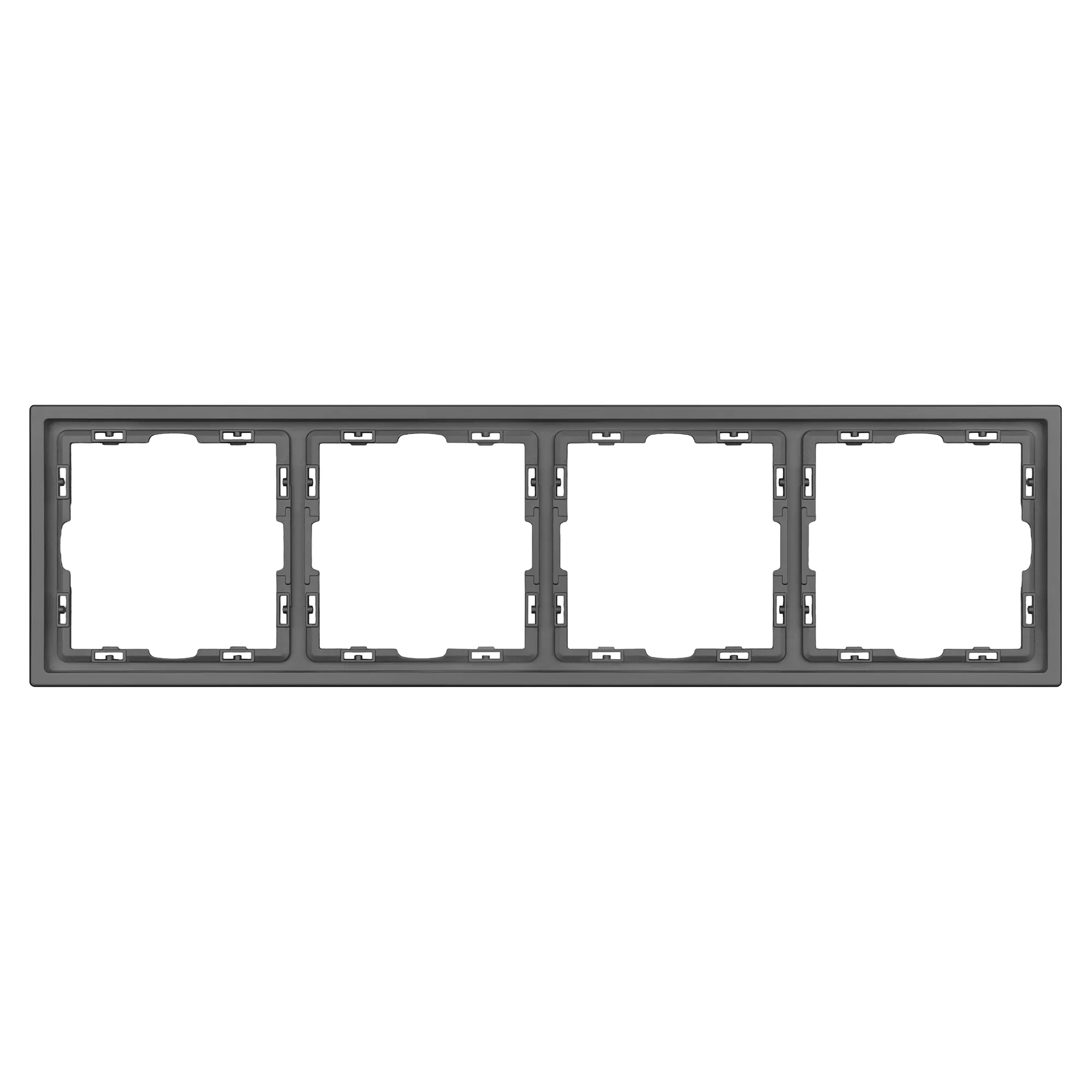 Рамка пластиковая на 4 поста, под встраиваемый механизм. Цвет - серый, с Soft-Touch покрытием. Среднего уровня герметичности IP20. Ориентация монтажа горизонтальная.