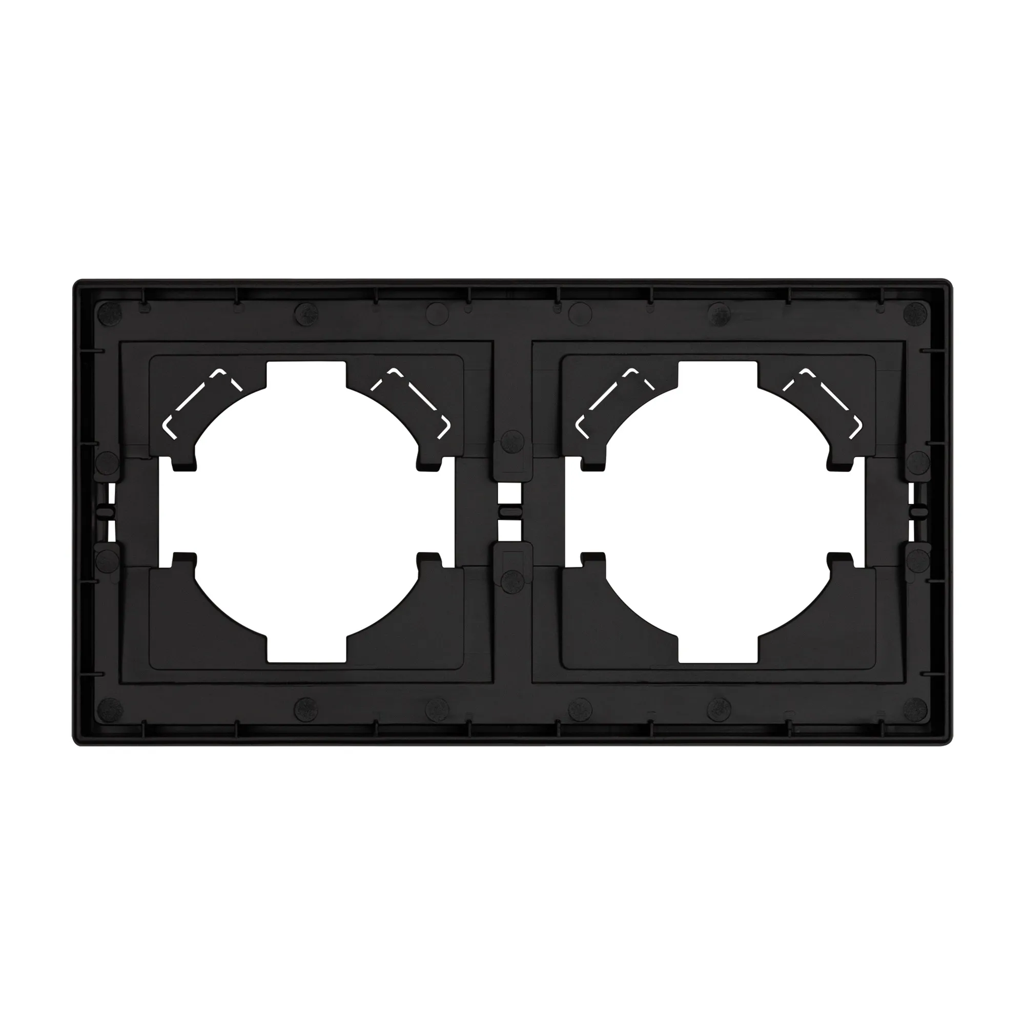Рамка пластиковая на 2 поста, под встраиваемый механизм. Цвет - черный. Среднего уровня герметичности IP20. Ориентация монтажа горизонтальная. Габаритные размеры: длина 150 мм, ширина 80 мм, высота 9 мм. Гарантийный срок 12 мес.