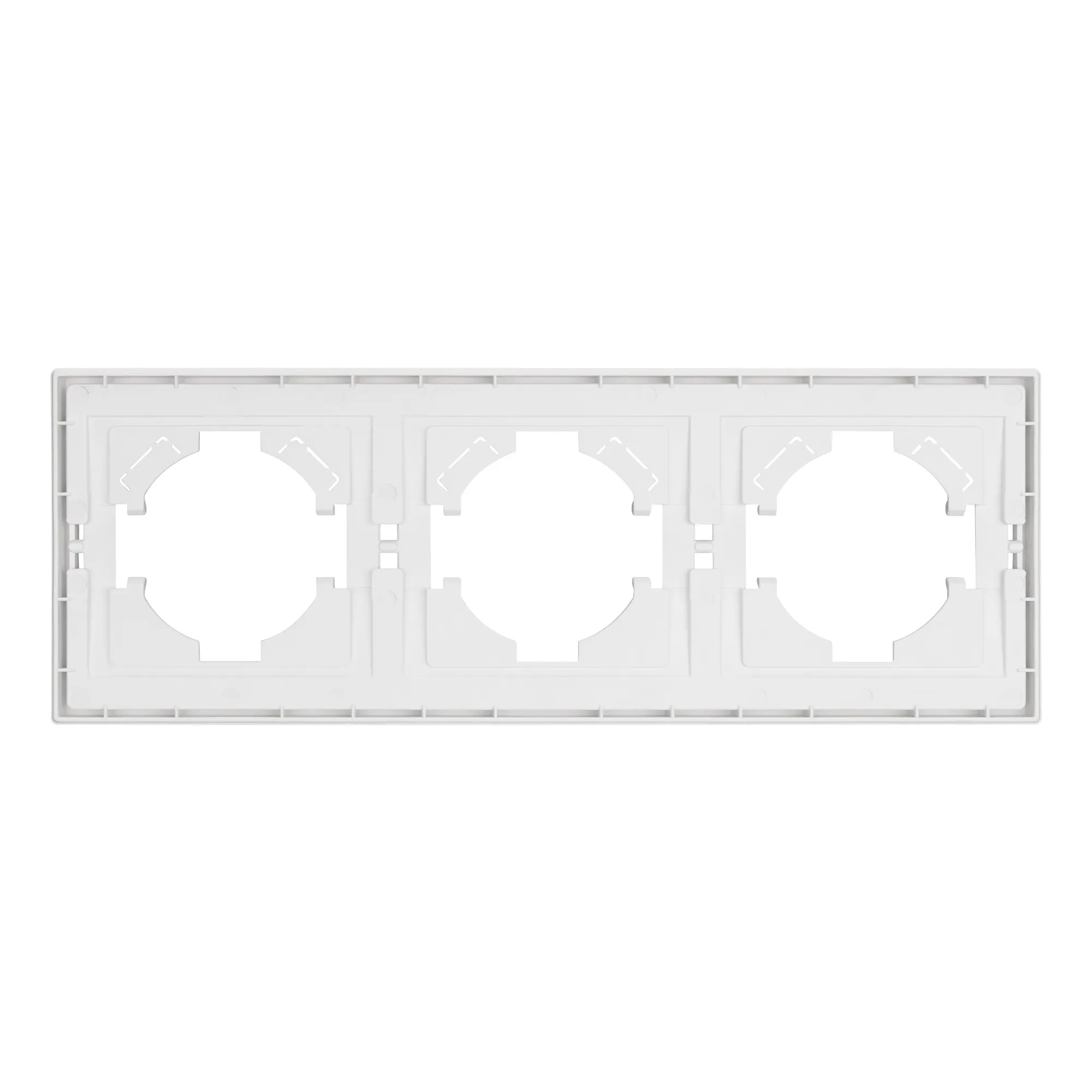 Рамка пластиковая на 3 поста, под встраиваемый механизм. Цвет - белый. Среднего уровня герметичности IP20. Ориентация монтажа горизонтальная.