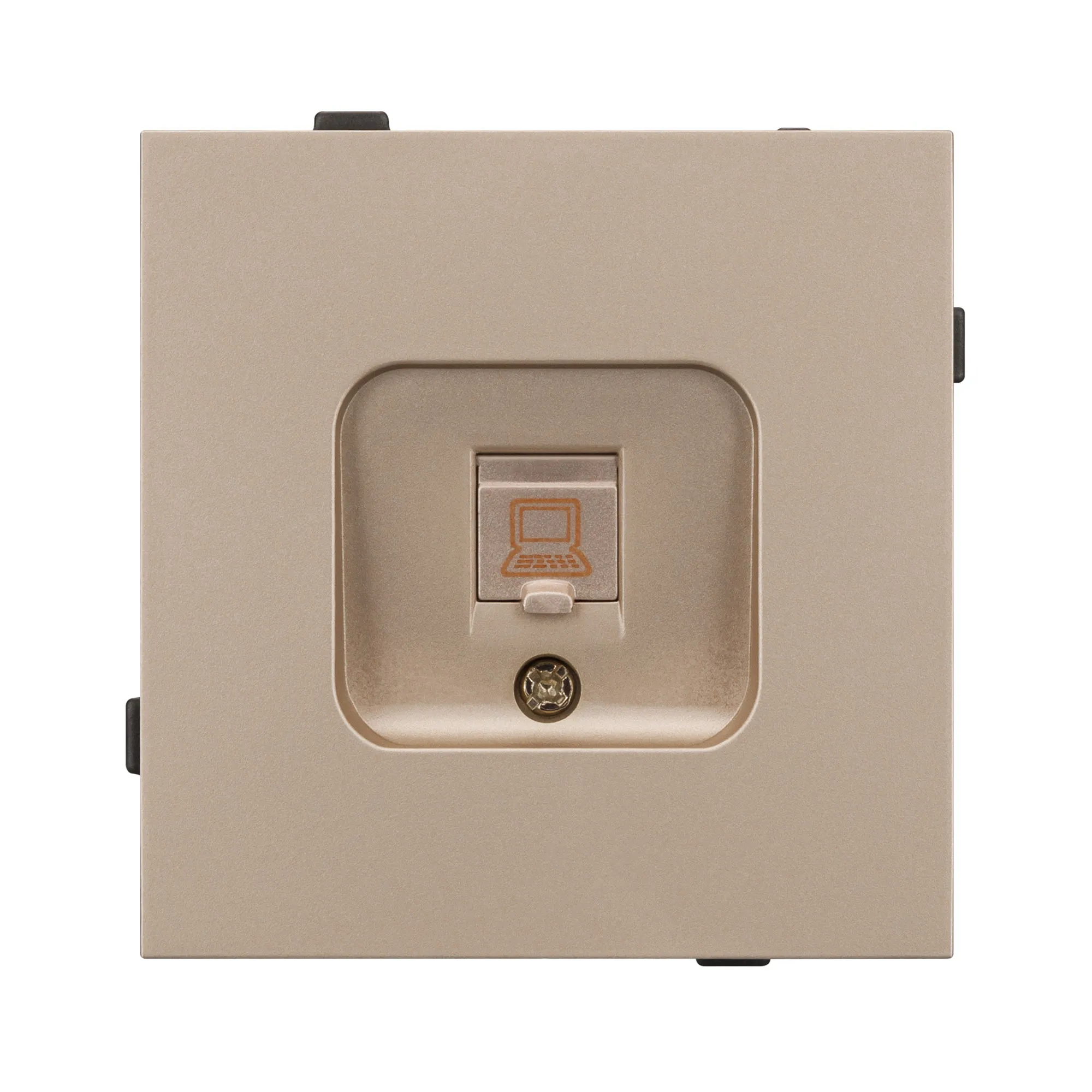 Механизм компьютерной розетки на 1 пост 6-й категории. Цвет - золотой. Без фронтальной рамки. Уровень пылевлагозащиты IP20. Розетка устанавливается в стандартный подрозетник круглого сечения диаметром 60мм.