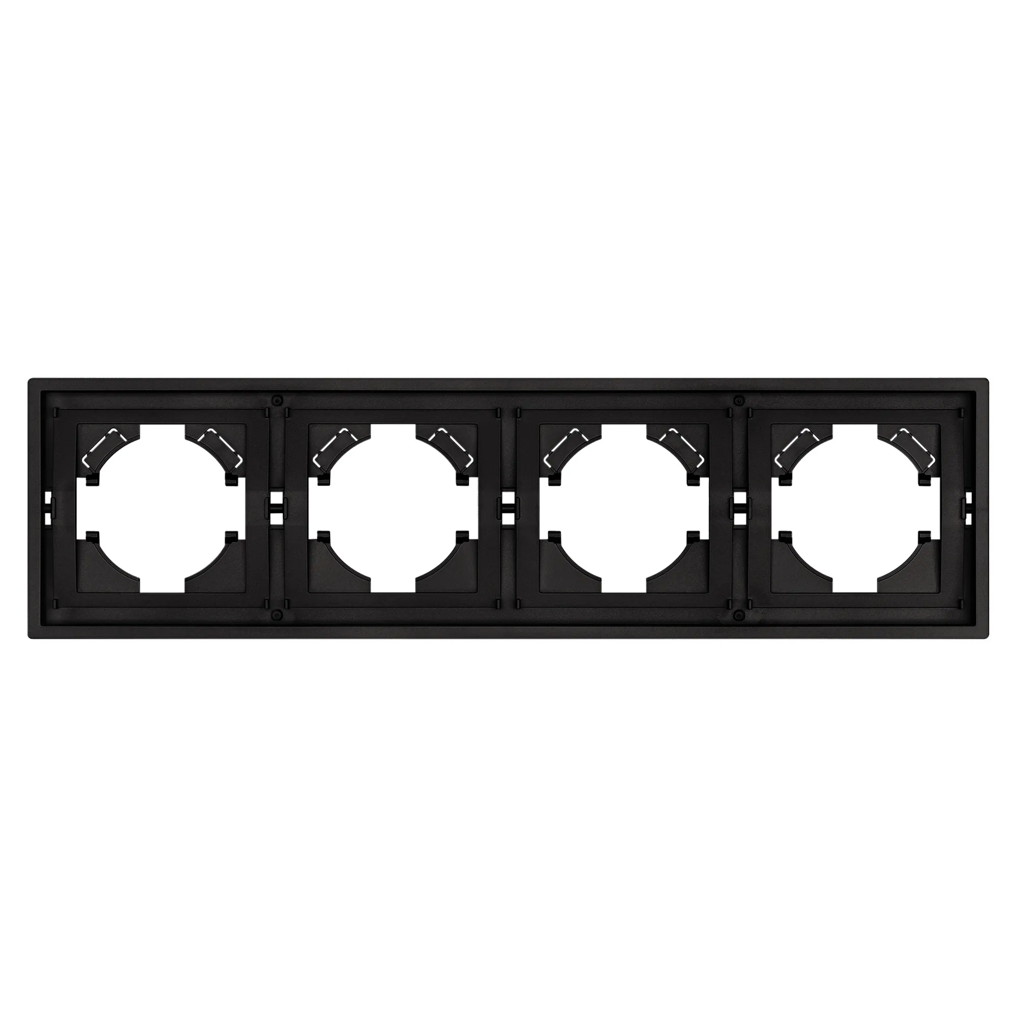 Рамка пластиковая на 4 поста, под встраиваемый механизм. Цвет - черный, с Soft-Touch покрытием. Среднего уровня герметичности IP20. Ориентация монтажа горизонтальная.