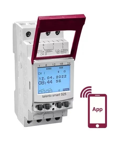 Версия системы Talento smart S25 позволяет установщикам создать общую систему с числом каналов до 8 в сочетании с модулями расширения Talento smart CE2. Цифровой таймер распределения Astro с 800 ячейками памяти для создания 50 зависящих от даты программ (ВКЛ, ВЫКЛ, цикл, импульс, случайное включение, случайное ВЫКЛ) и 50 независимых от даты программ (ВКЛ, ВЫКЛ, цикл, импульс, случайное ВКЛ, случайное ВЫКЛ) с кратчайшим временем переключения 1 минута (ВКЛ/ВЫКЛ) или 1 секунда (цикл, импульс). Бесплатное формирование блоков будних дней. Переход на летнее/зимнее время осуществляется автоматически, в зависимости от даты или может быть деактивирован. Настройка 12/24 часа. отображение состояния переключения. Встроенный счетчик часов с сервисной функцией. Ручной переключатель: автоматический, фиксированное ВКЛ/ВЫКЛ, блокировка. Белая подсветка дисплея для хорошей читаемости. Энергонезависимая память (EEPROM) для сохранения программ в случае сбоя питания. Резерв батареи до восьми лет. Часы можно опломбировать и защитить от несанкционированного доступа с помощью PIN-кода. Программирование выполняется либо непосредственно на часах, либо с помощью мобильных устройств и соответствующих приложений (Android и iOS) и соответствующего программного обеспечения для ПК.